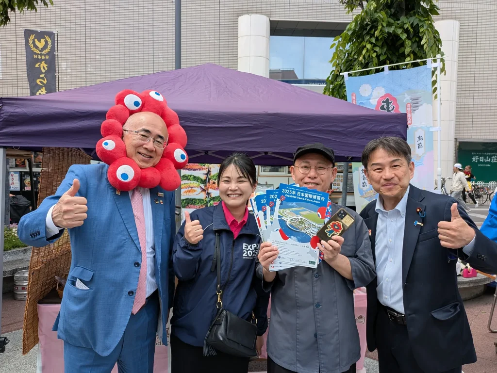 大阪観光局の溝畑理事長、ミャクミャクが万博のPRをしていました🔴🔵