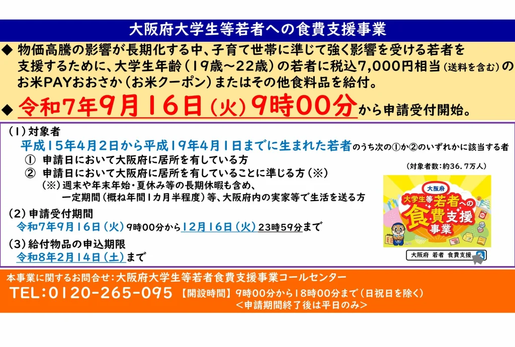 ◆ご不明な点は、「大阪府大学生等若者食費支援事業コールセンター」までお問い合わせください。